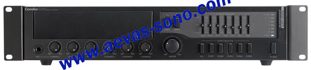 AUDIOPHONY COMBO240 Sources et amplificateurs PA - Combiné Mixer/Amplificateur multizone Ligne 100V combo 5 zones 6 entrées - 240W Réglages en façades :