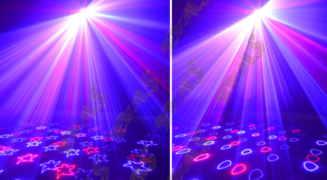 Le Double Power RBP Dune est un laser bleu et rouge avec des effets gobos à couper le souffle !