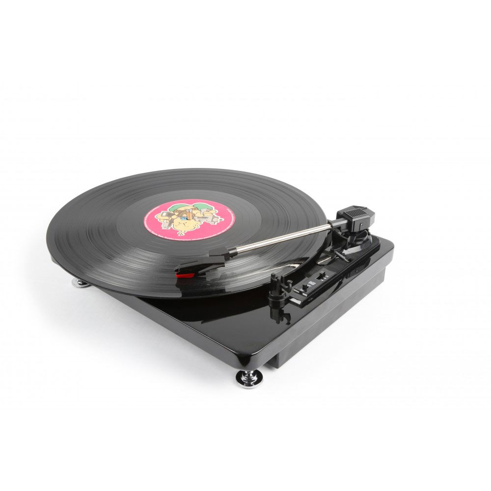 • Les pieds anti-vibrations assurent une lecture douce de tout type de musique. Utilisez le port USB pour convertir votre vinyl en MP3 via un PC avec le logiciel livré.