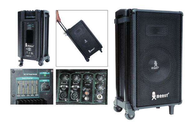 - Enceinte amplifiée BOOST GMA 150 portable avec batterie et table de mixage incorporée.