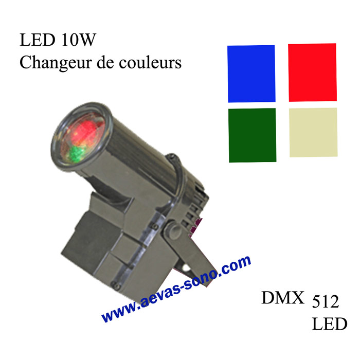 • projecteur led 10w RGBW changeur de couleur intégré 4 couleurs: ( VERT / ROUGE/ BLEU / Blanc / Mode automatique et DMX ...)
