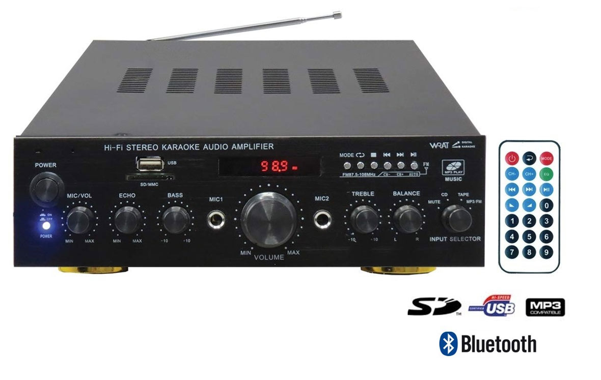 Amplificateur Karaoké avec echo 2 entrées microphone AMXP100 MP3 BT